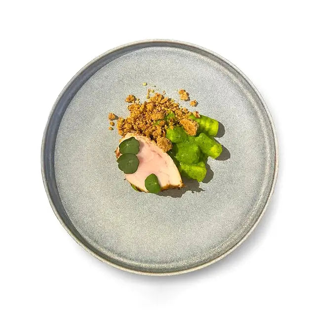 Espadon délicatement rôti, accompagné de gnocchi moelleux à la roquette, ponctué d’un crumble au gingembre.