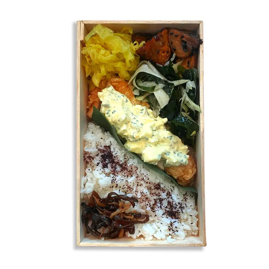 Le Bento de la semaine est composé du riz assaisonné, viande ou poisson, assortiment de légumes.